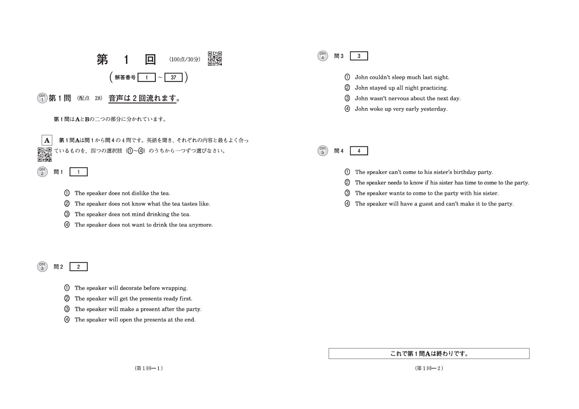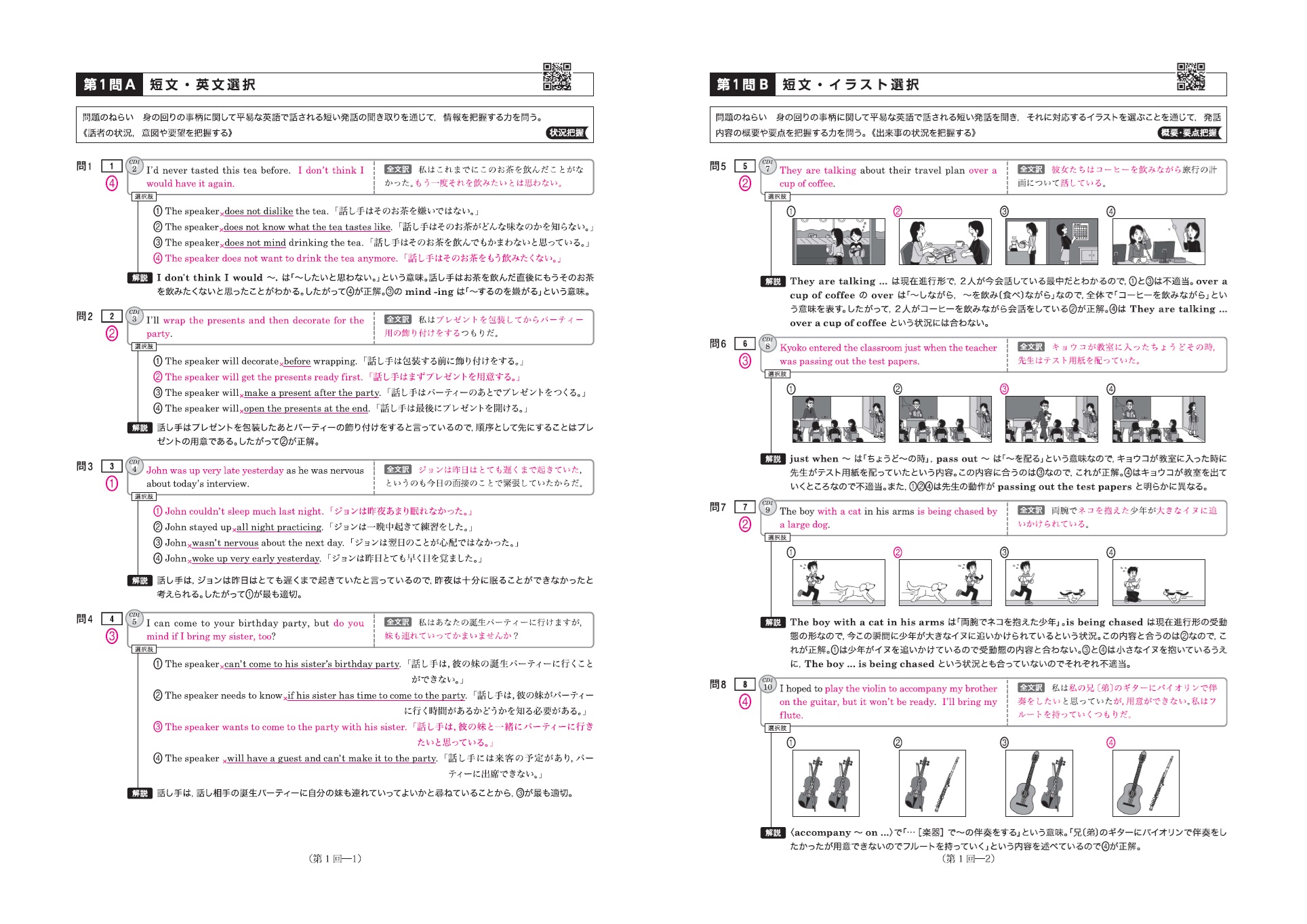 問題音声は、冊子に掲載されている二次元コード、別売りの音声CDからお聞きいただけます。