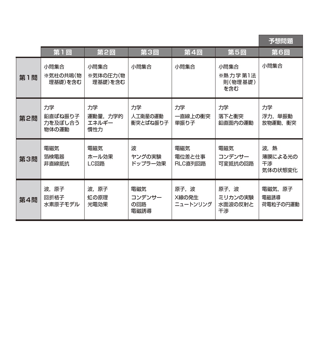 共通テストでは、日常生活にまつわる物理現象や実験などを題材に探求的な問題が出題されており、思考力、考察力、読解力、計算力などが求められています。また、原子分野も出題され、幅広い分野の理解も必要となります。直前演習では、基本的な知識・技能を問う問題と、探究の過程を意識した思考力を問う問題を、4大問にバランスよく構成しております。共通テストで必要な力を効率よく身につけていただくために、ぜひご活用ください!